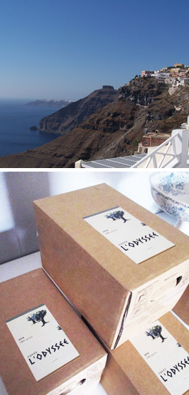 Création graphique réalisée pour une soirée événementielle sur la thématique de la grèce / étiquettes bag in box vin rouge / illustration à l’encre